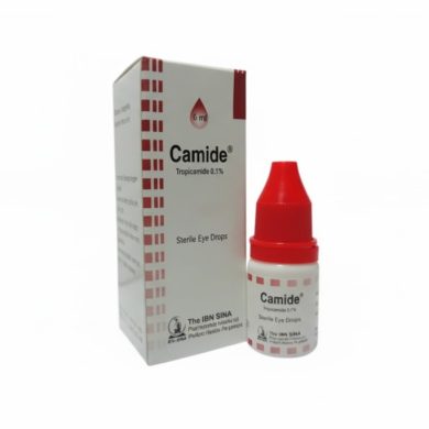 Camide 1% is used before eye examinations and to treat an eye condition called uveitis. It acts by enlarging the pupil of the eyes and helps the doctor visualize the eye more closely. It reduces redness and swelling in the eyes after cataract surgery. Camide 1% is for external use only. Use it in the dose and duration as advised by the doctor. Refrain from touching the tip of the dropper to any surface to avoid contaminating the eye drops. Using Camide 1% can make your eyes more sensitive to light. Thus, wear sunglasses to protect your eyes from sunlight and other bright lights. The common side effects include burning sensation, irritation, or temporarily blurring of the vision. Usually, these symptoms resolve quickly. However, if the symptoms persists for a longer duration, contact your doctor. It is not advised to drive after using this medicine as it may cause blurring of the vision.